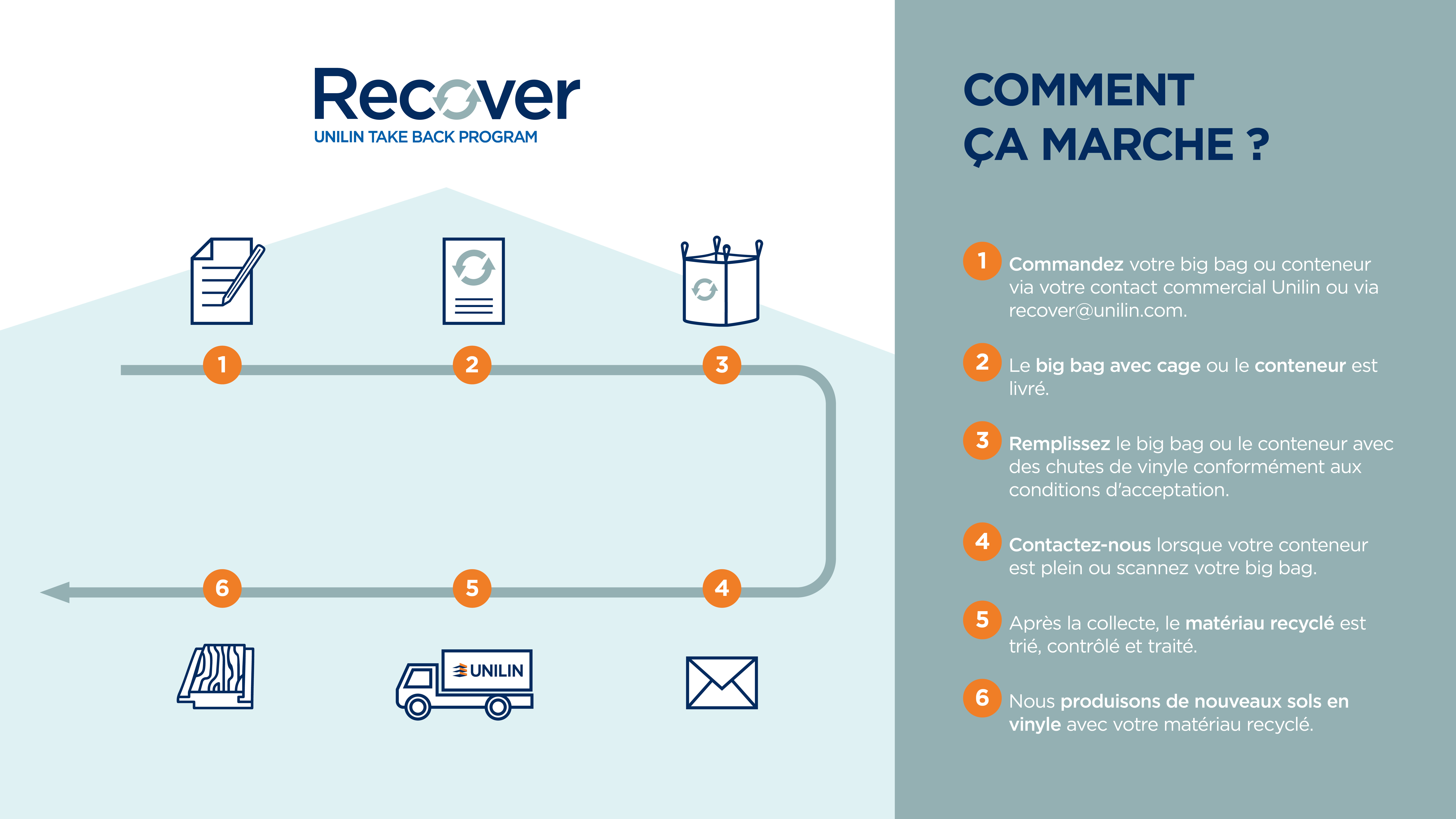 Dans notre quête de circularité, nous ne nous contentons pas d'examiner la composition de nos produits : nous collectons également les produits Unilin usagés pour les recycler. C'est là que le programme Recover entre en jeu.