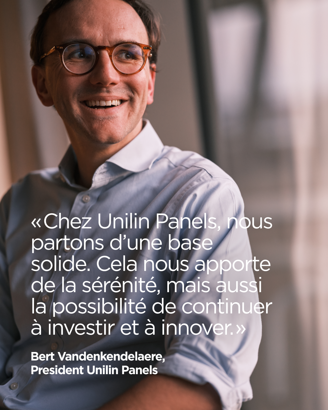 Malgré les défis, tous deux envisagent l’avenir avec confiance. Pour Bert, celui d’Unilin Panels s’inscrit avant tout dans la continuité et le potentiel de croissance. « Nous partons d’une base solide et d’une stratégie claire à long terme. Cela apporte de la sérénité, tout en laissant la place à l’investissement, à l’innovation et à une croissance continue aux côtés de nos équipes et de nos partenaires. »