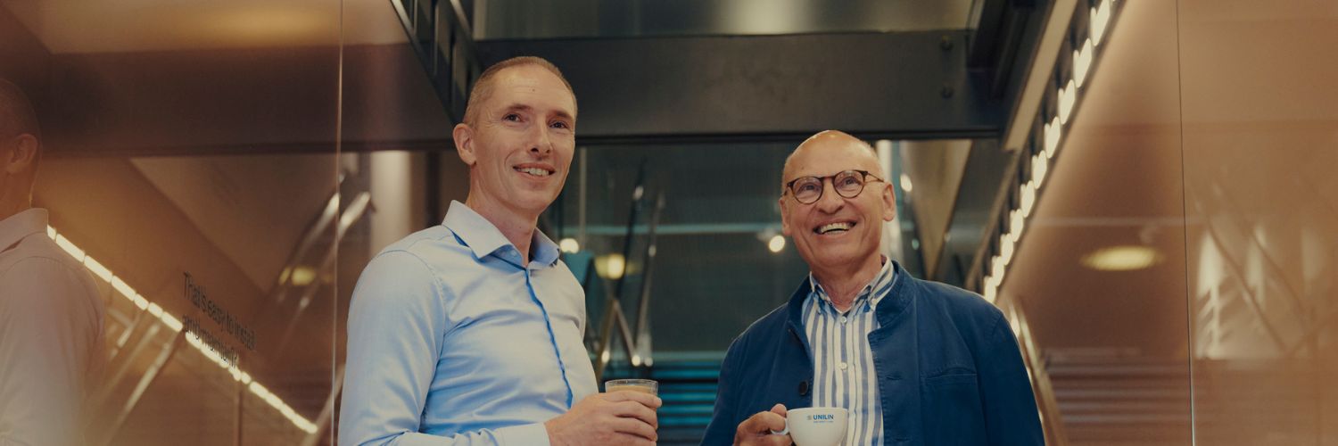 Après 40 ans chez Unilin, dont 14 ans en tant que CEO, Bernard Thiers confie les rênes de l'entreprise à Wim Messiaen. Ils se connaissent bien.